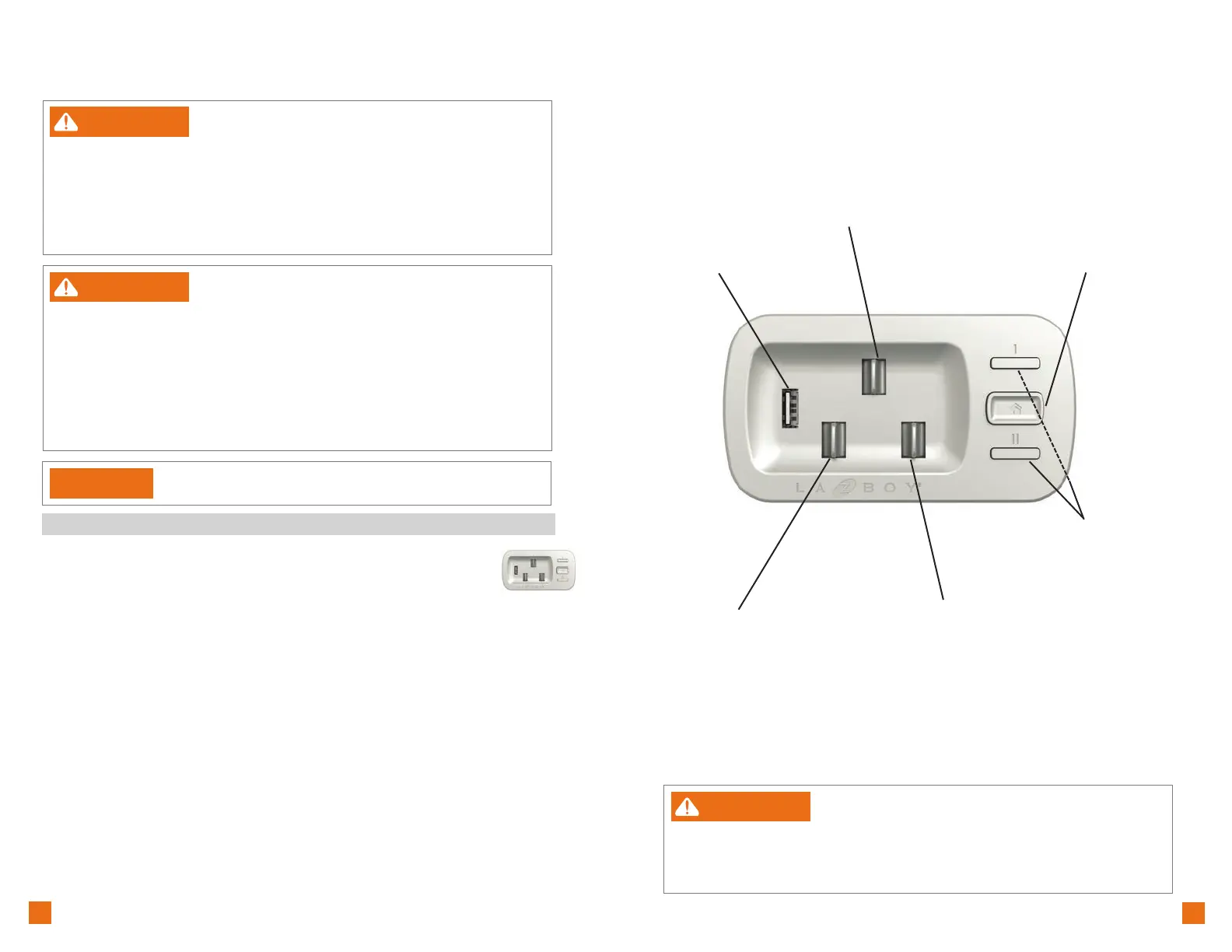 from the chair to the outlet to allow for rocking and reclining. Never stretch or strain a cord.