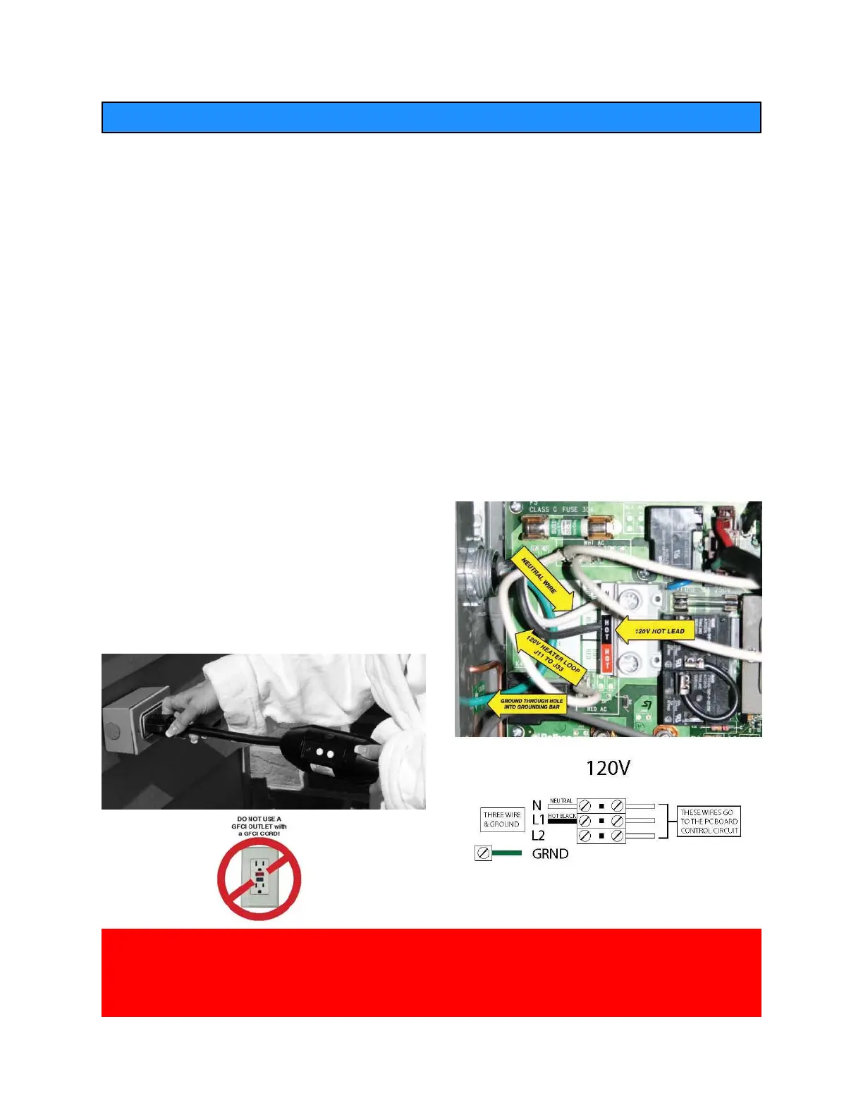 HAVINGANY OTHER ELECTRICAL APPLIANCES AT ALL ON THIS CIRCUIT WHILE THE SPA IS RUNNING