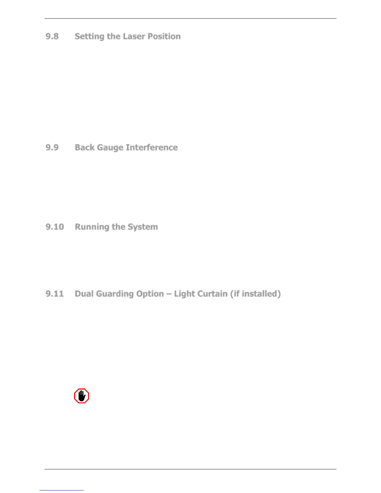 9.11 Dual Guarding Option – Light Curtain (if installed)