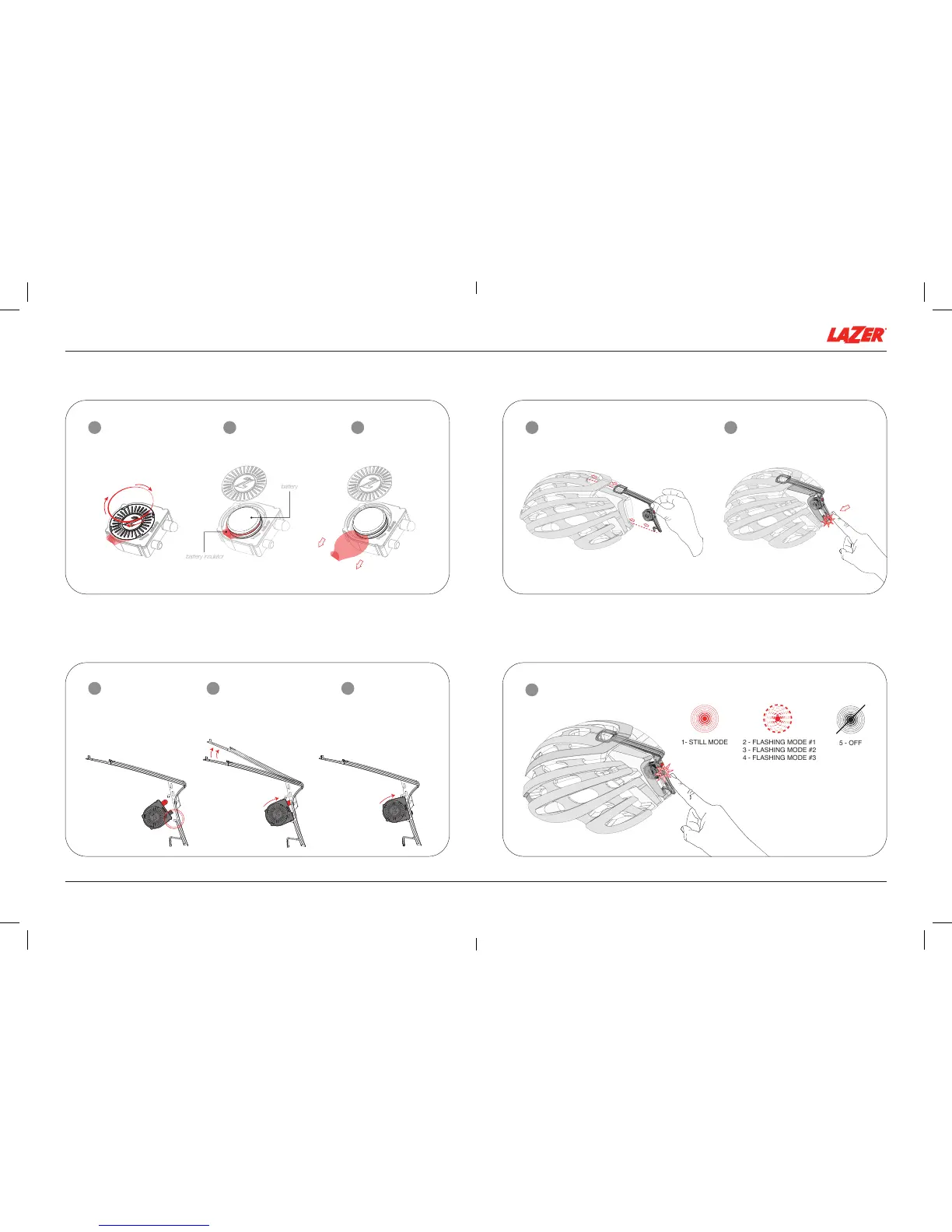 LAZER Z1 - Remove Battery Insulation Tab; Insert LED into Mudcap; Install Mudcap into Helmet; Light Mode Operation