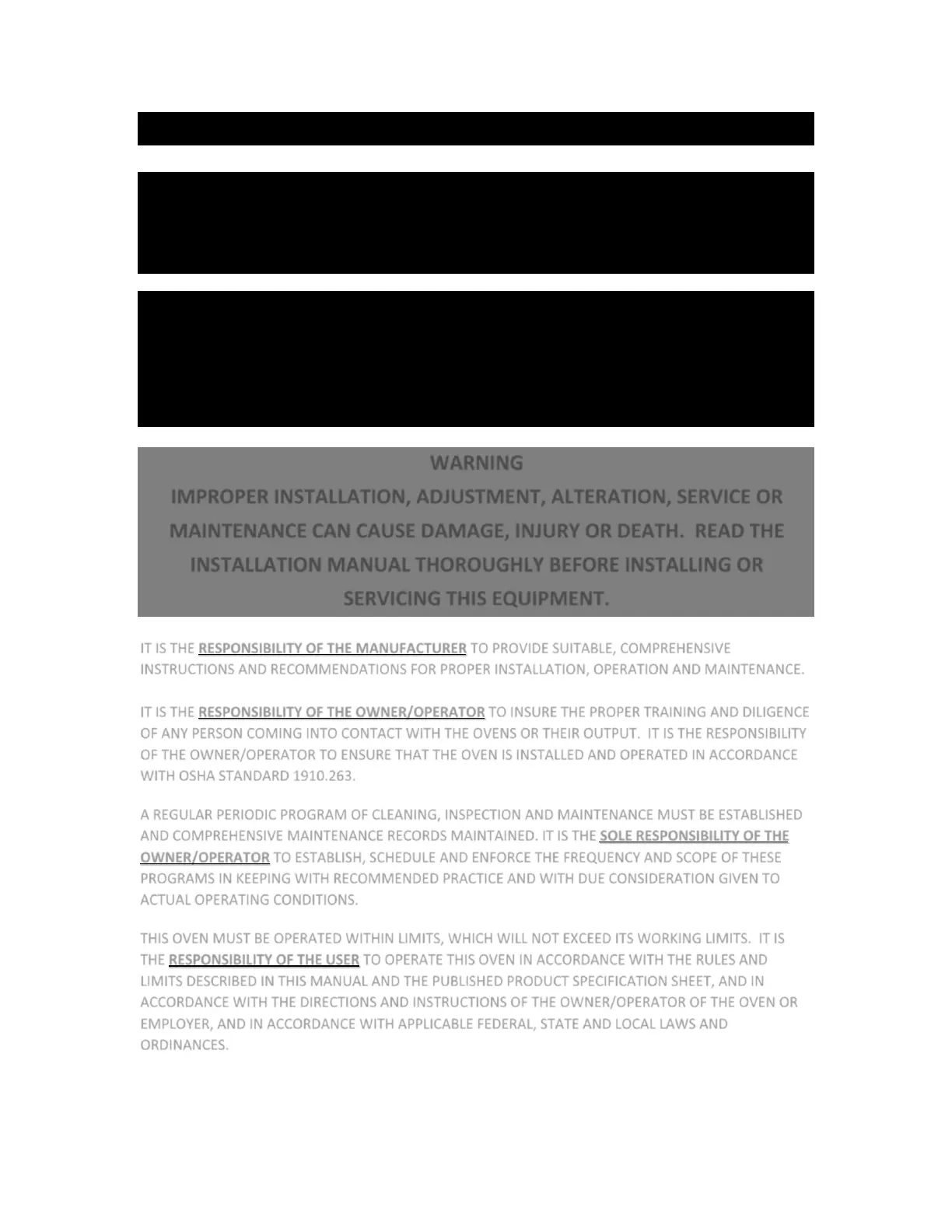 OF THE OWNER/OPERATOR TO ENSURE THAT THE OVEN IS INSTALLED AND OPERATED IN ACCORDANCE