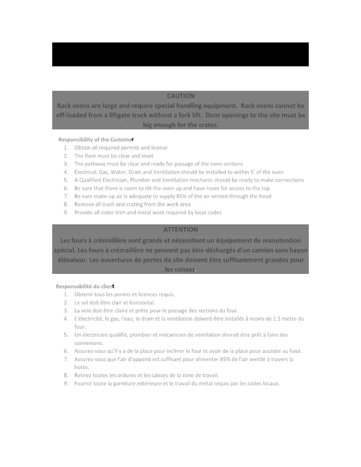 Rack ovens are large and require special handling equipment. Rack ovens cannot be