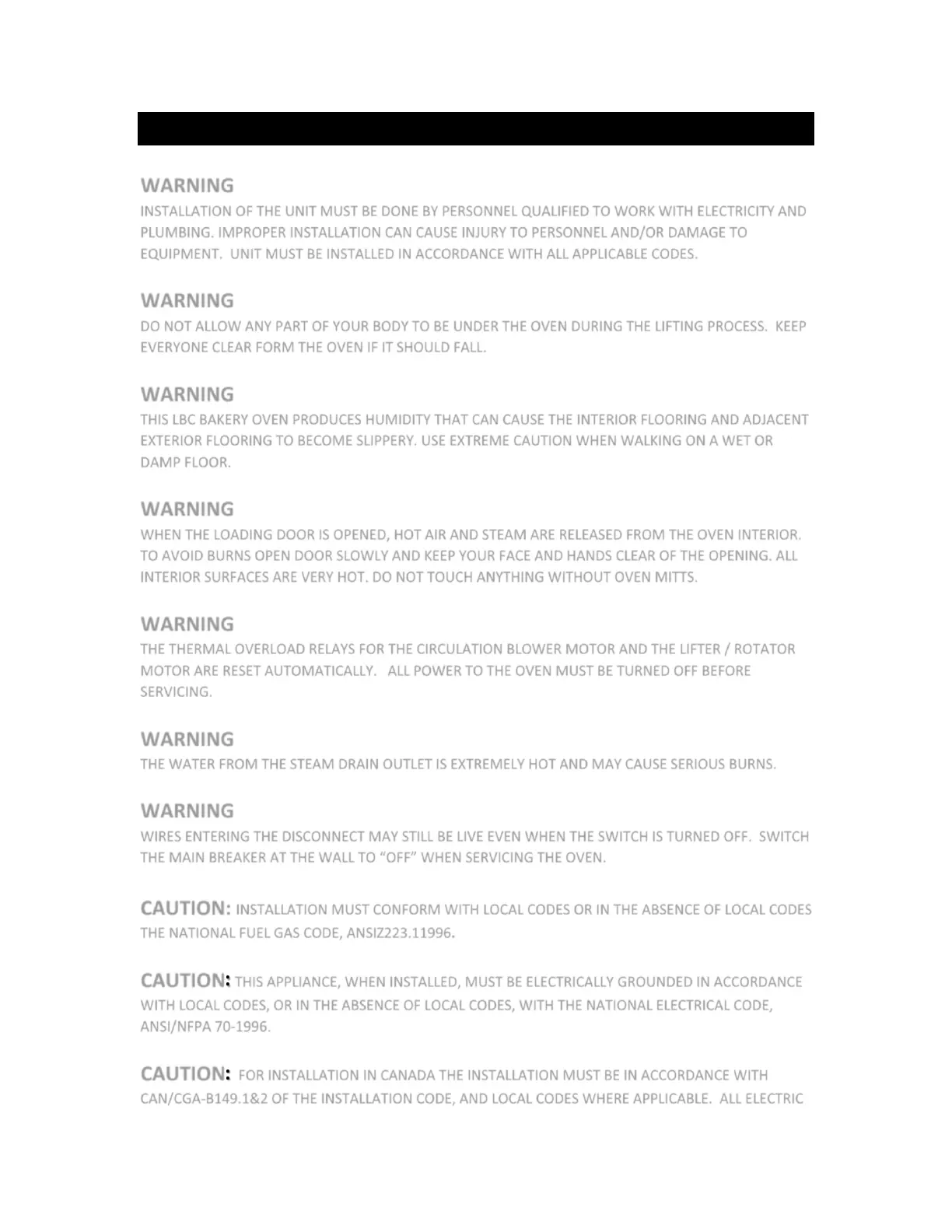 WHEN THE LOADING DOOR IS OPENED, HOT AIR AND STEAM ARE RELEASED FROM THE OVEN INTERIOR.