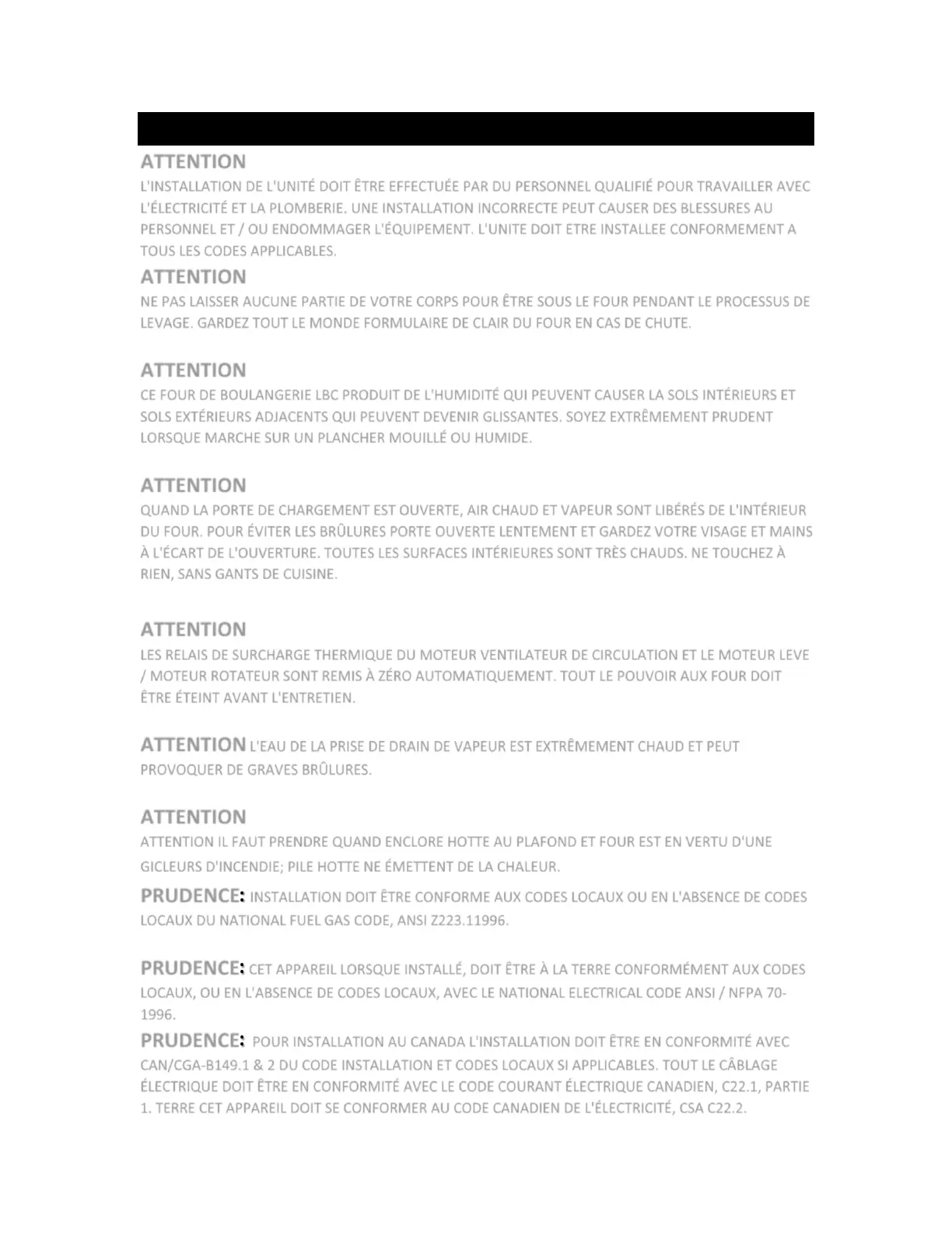 PRUDENCE: POUR INSTALLATION AU CANADA L'INSTALLATION DOIT ÊTRE EN CONFORMITÉ AVEC