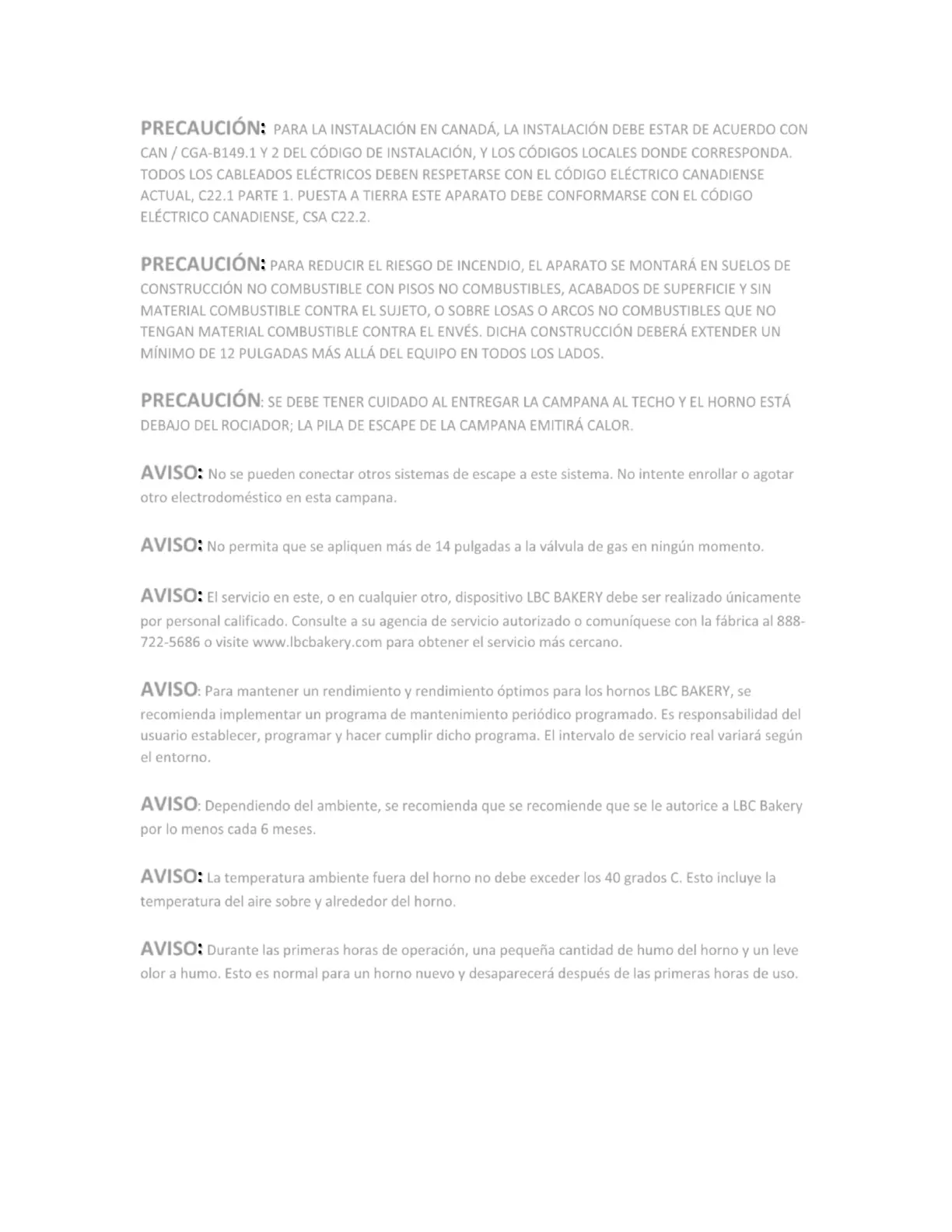 AVISO: Para mantener un rendimiento y rendimiento óptimos para los hornos LBC BAKERY, se