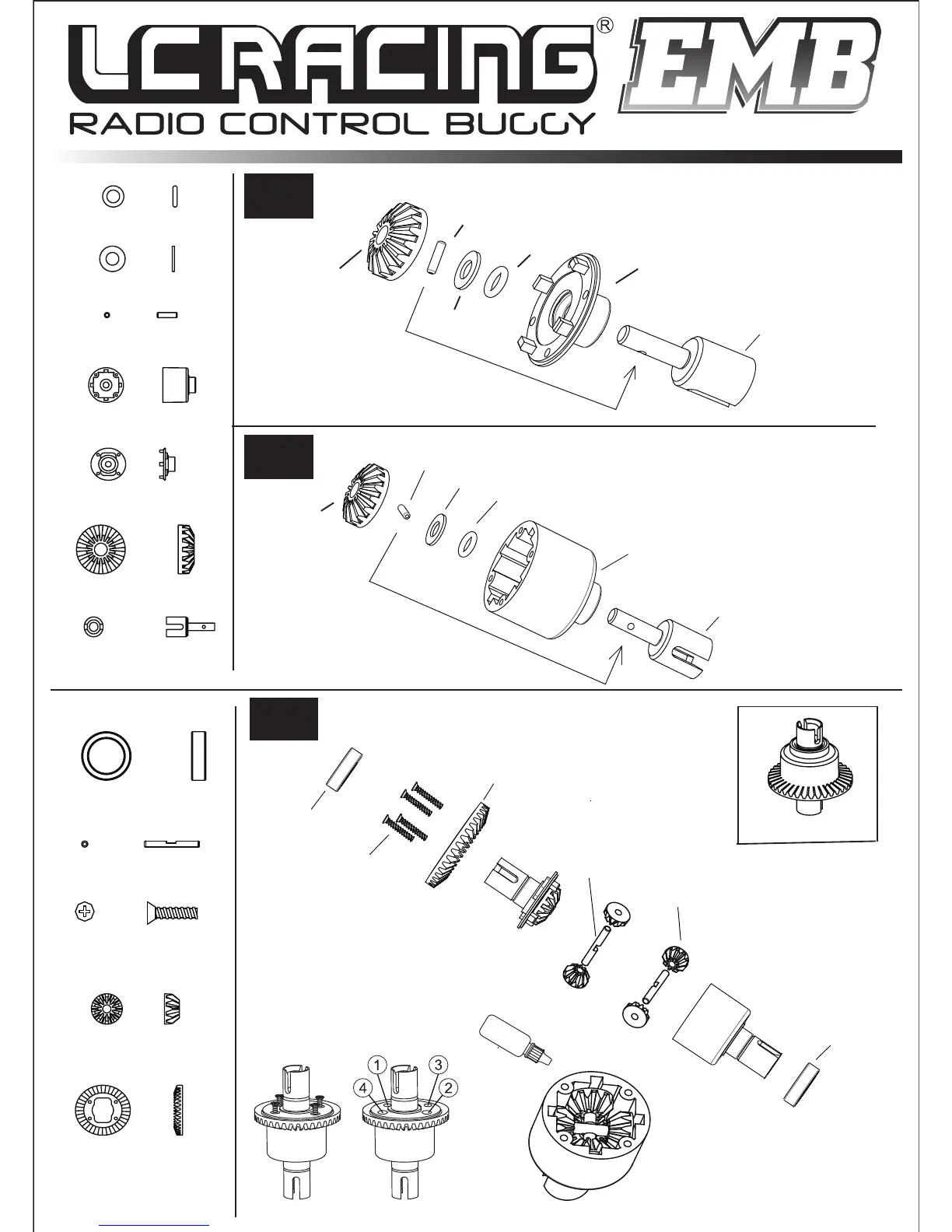 LC RACING EMB - Differential Assembly; Differential Parts A-1; Differential Assembly A-2; Differential Assembly A-3