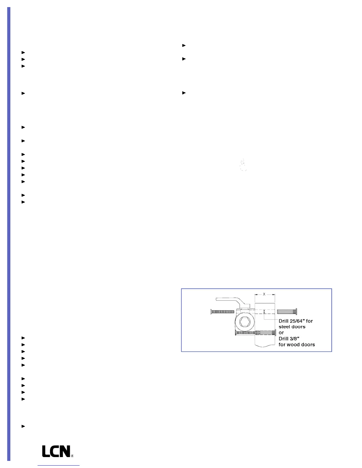 3. LCN recommends the use of wood screws, available in optional