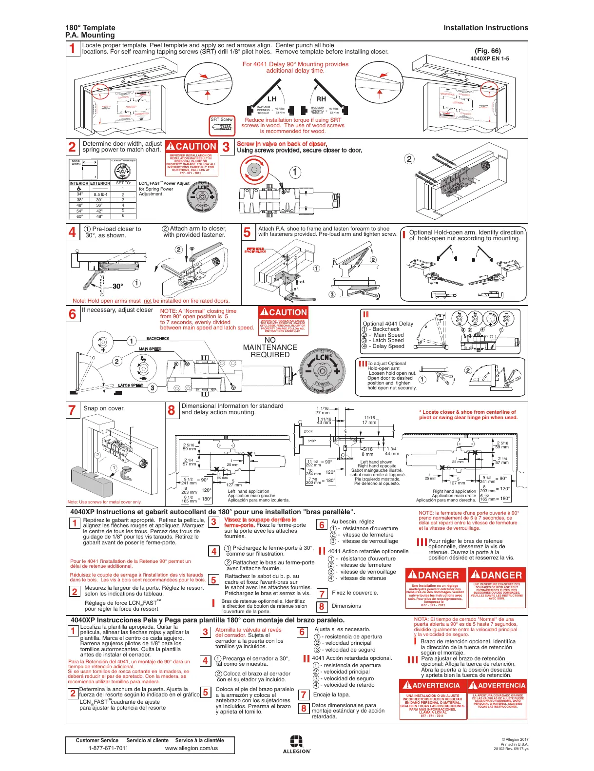 4040XP Instructions et gabarit autocollant de 180° pour une installation "bras parallèle".