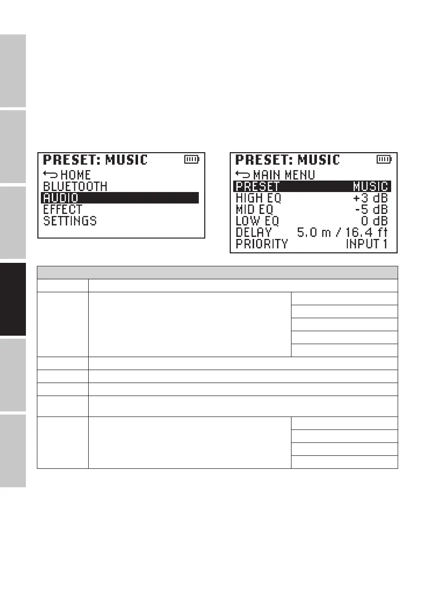 seleccione la opción del menú AUDIO (marcada en fondo oscuro). Pulse de nuevo el control giratorio