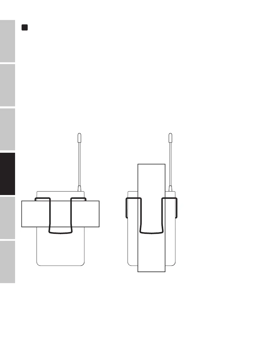 Cuelgue el transmisor a un cinturón o correa, tal y como se muestra en la figura.