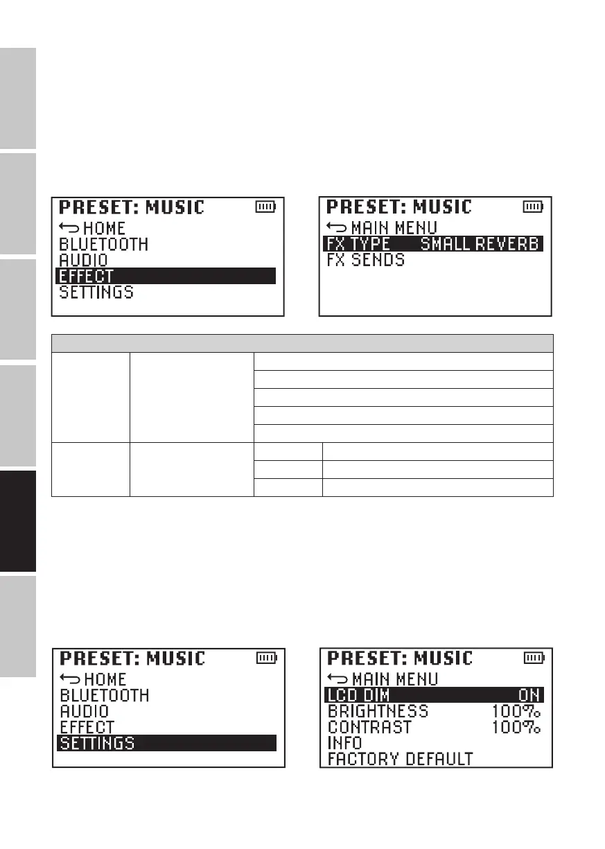 EFFECT (zmiana wartości lub statusu = przekręcenie enkodera, potwierdzenie zmiany wartości lub statusu = naciśnięcie enkodera)