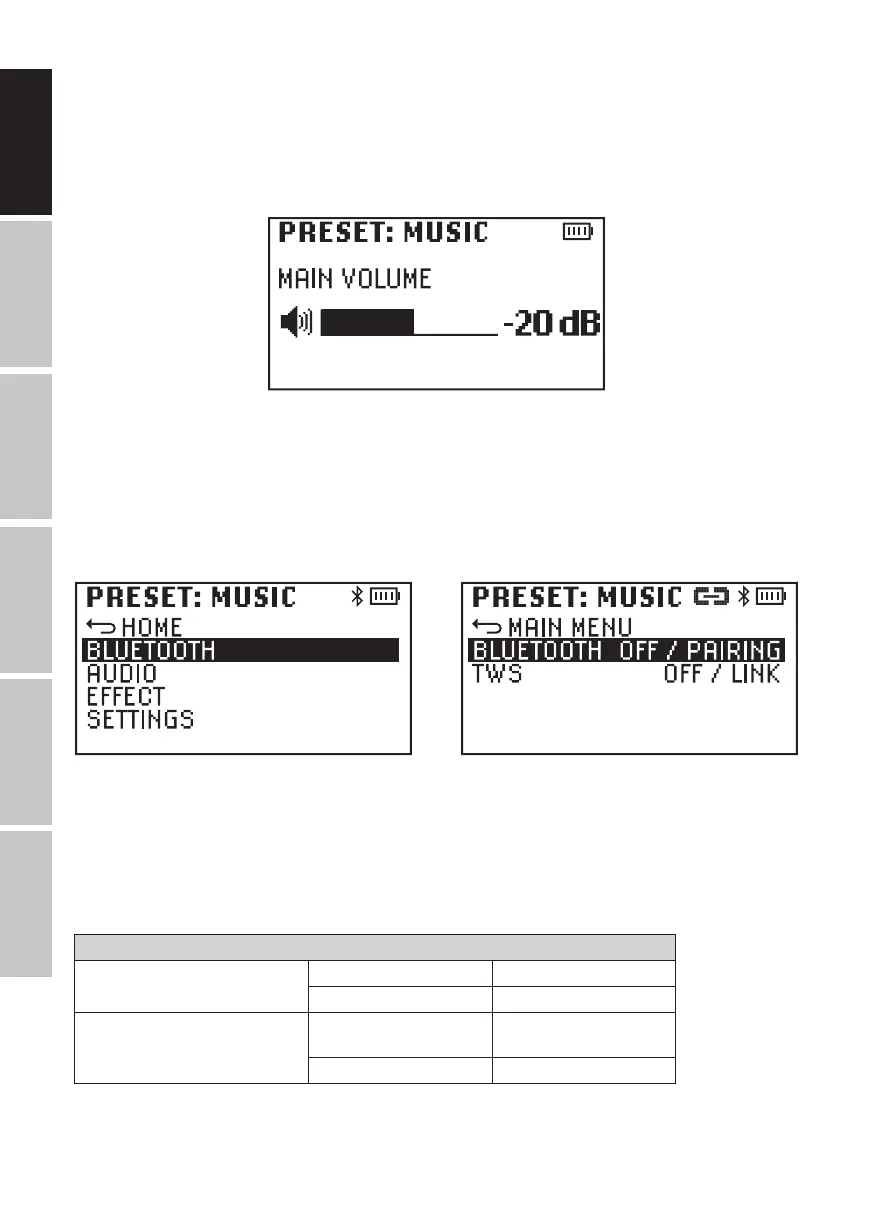 BLUETOOTH (Change status = turn encoder, confirm status change = press encoder)