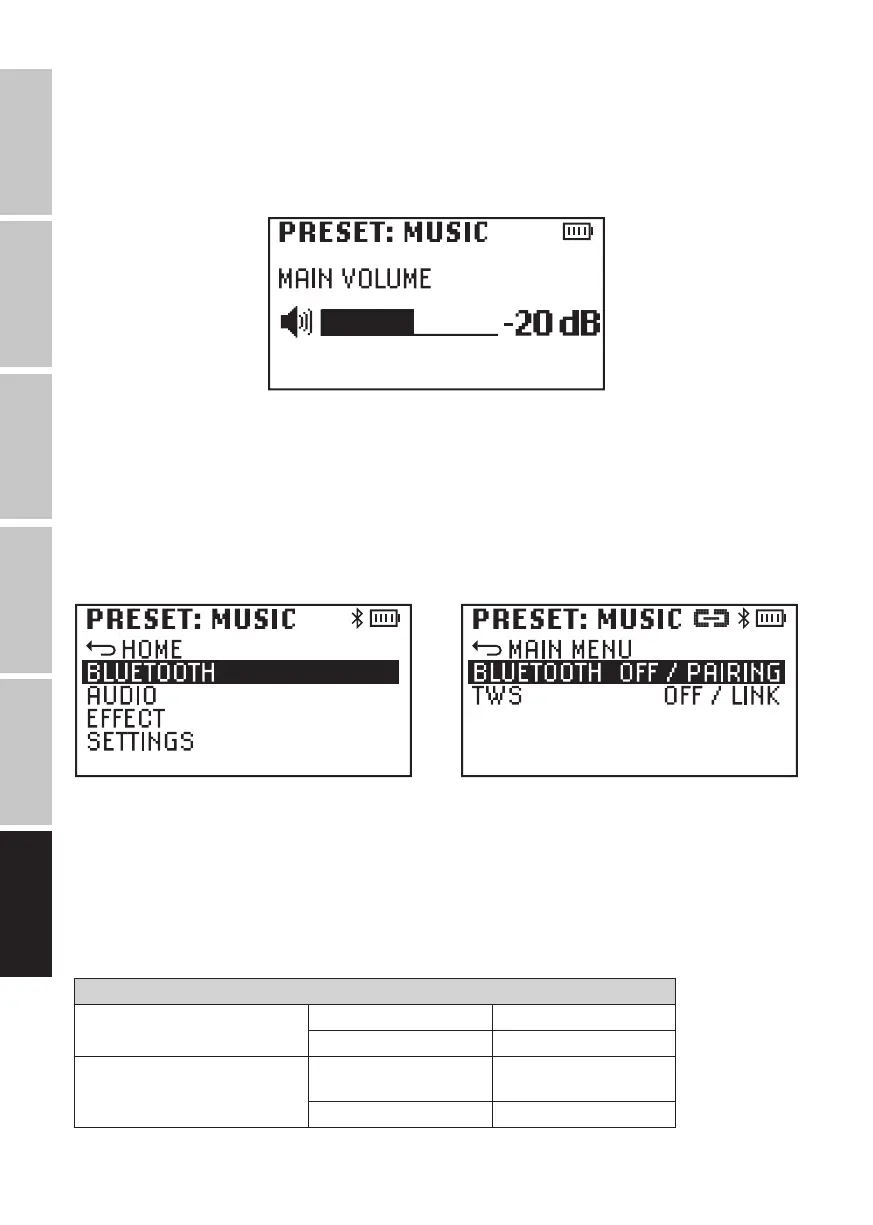 BLUETOOTH (per cambiare stato, ruotare l’encoder; per confermare il cambio di stato premere l’encoder)