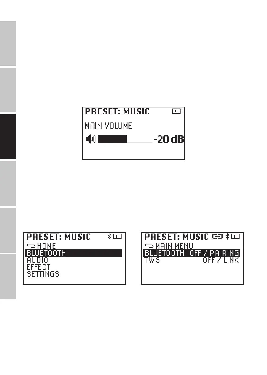 menu BLUETOOTH en tournant l'encodeur (le mot apparaît en surbrillance sur fond sombre). Appuyez à