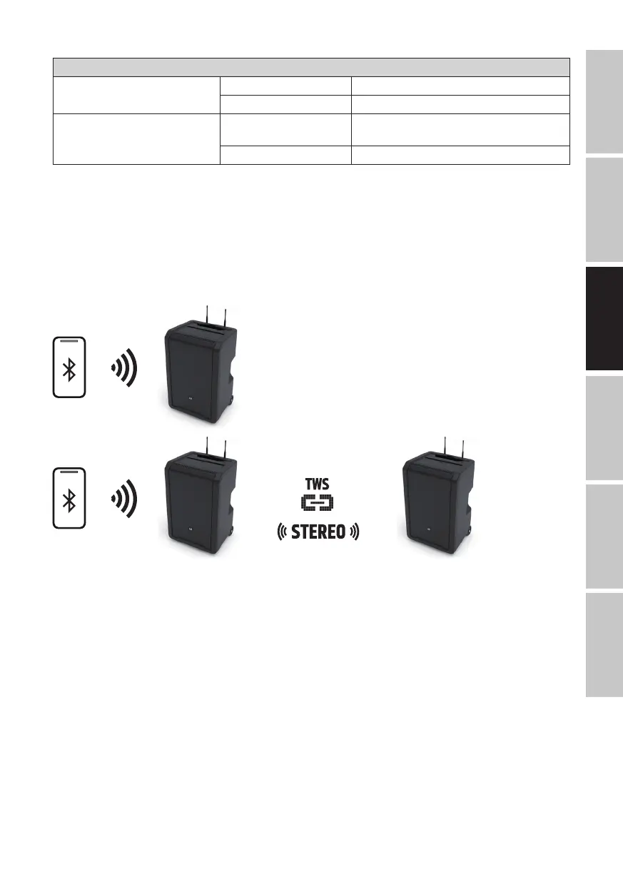 reproduits en stéréo sans qu'il soit nécessaire de relier les deux enceintes par un câble. Pour se connecter