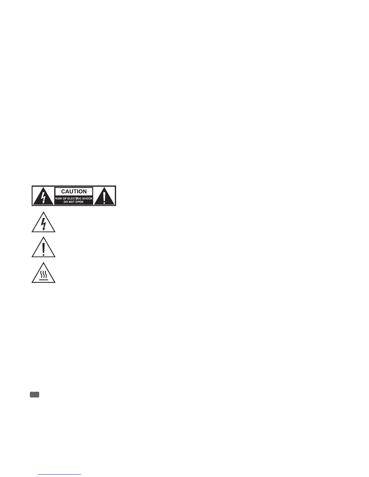 To reduce the risk of electric shock, do not remove cover (or back). There are no user serviceable parts