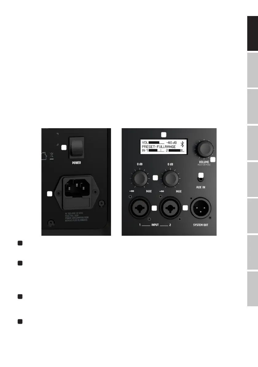 On/off switch. The speaker should always be the last device to be switched on in the signal chain, and the rst to be switched off.
