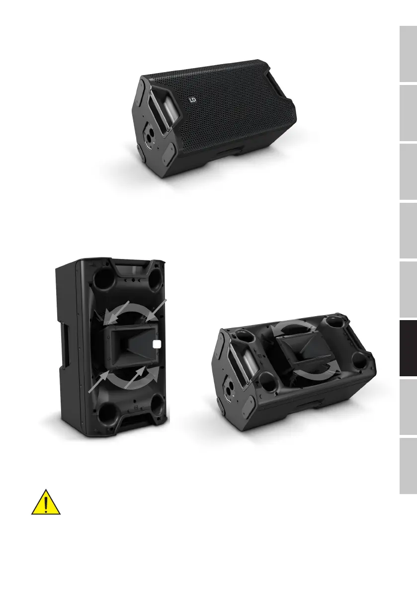 Il tweeter a tromba può essere ruotato di 90° per applicazioni in cui l'altoparlante è montato orizzontalmente o utilizzato come monitor da pavimento.
