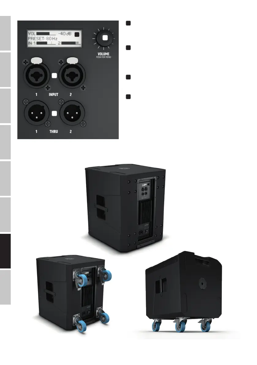 多功能图形 LC 显示屏,用于显示主音量、DSP 预置和主菜单