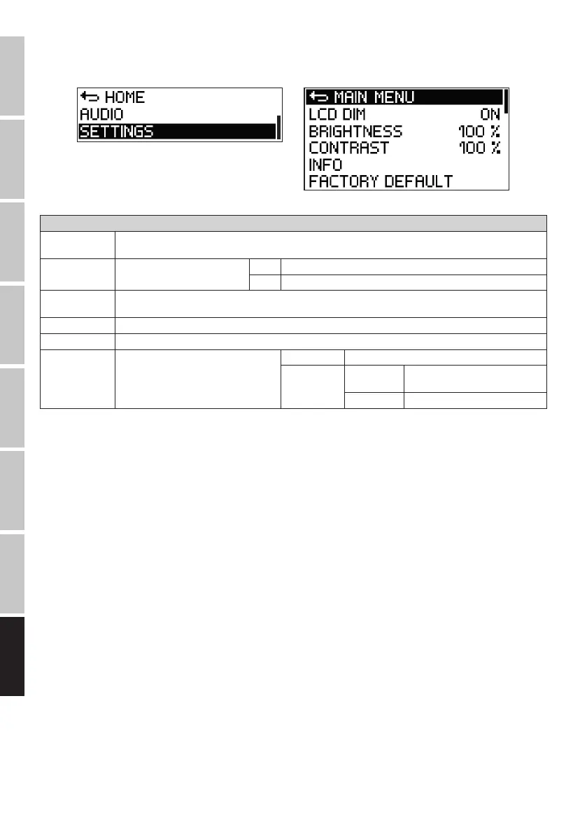 按下旋轉—按壓式編碼器可存取主功能表,接著轉動編碼器可選取功能表SETTINGS項目(深色背景)。再次按下編碼器