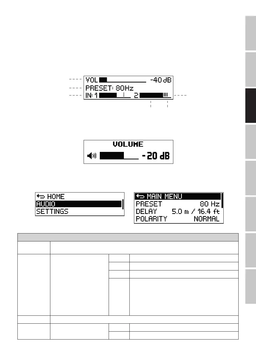 RETARD Retard du signal audio par pas de 9,7 cm jusqu'à 32 9,7 m (0 ft = OFF, afchage en mètres et en pieds)