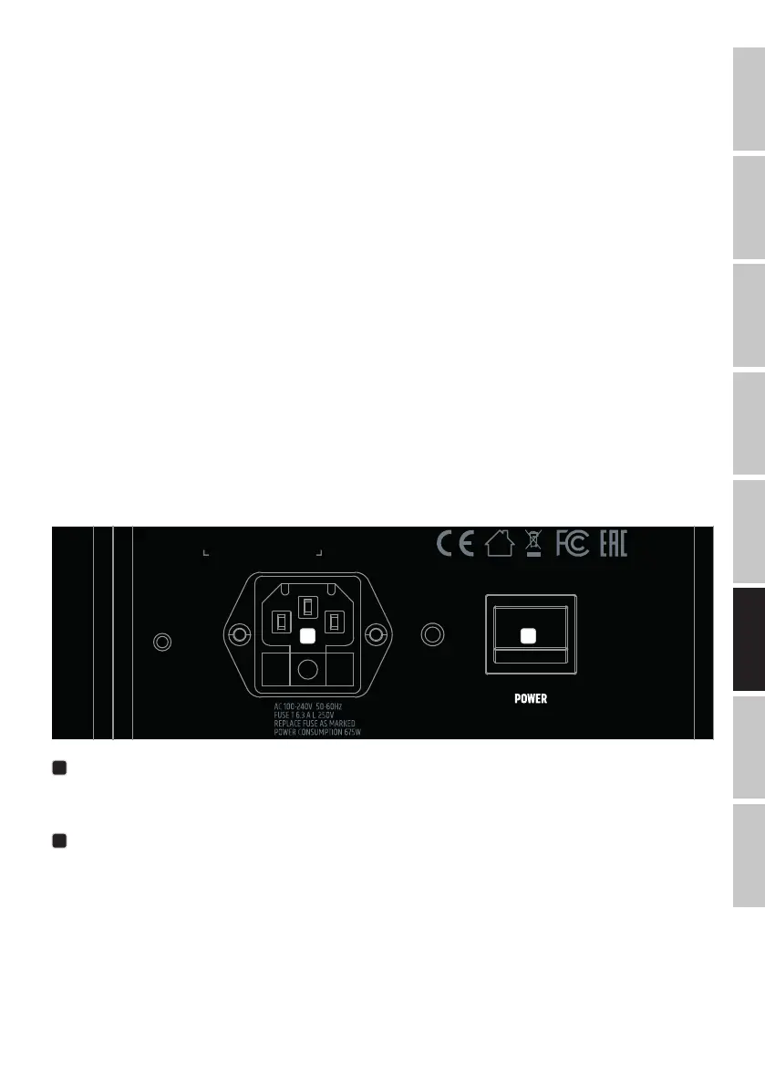 Interruttore on/off. Nella catena dei segnali, l’altoparlante deve sempre essere l’ultimo dispositivo che viene acceso e il primo che viene spento.