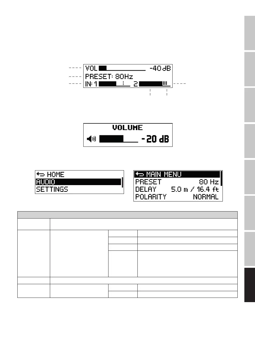 按下旋轉—按壓式編碼器可存取主功能表,接著轉動編碼器可選取功能表AUDIO項目(深色背景)。再次按下編碼器可存