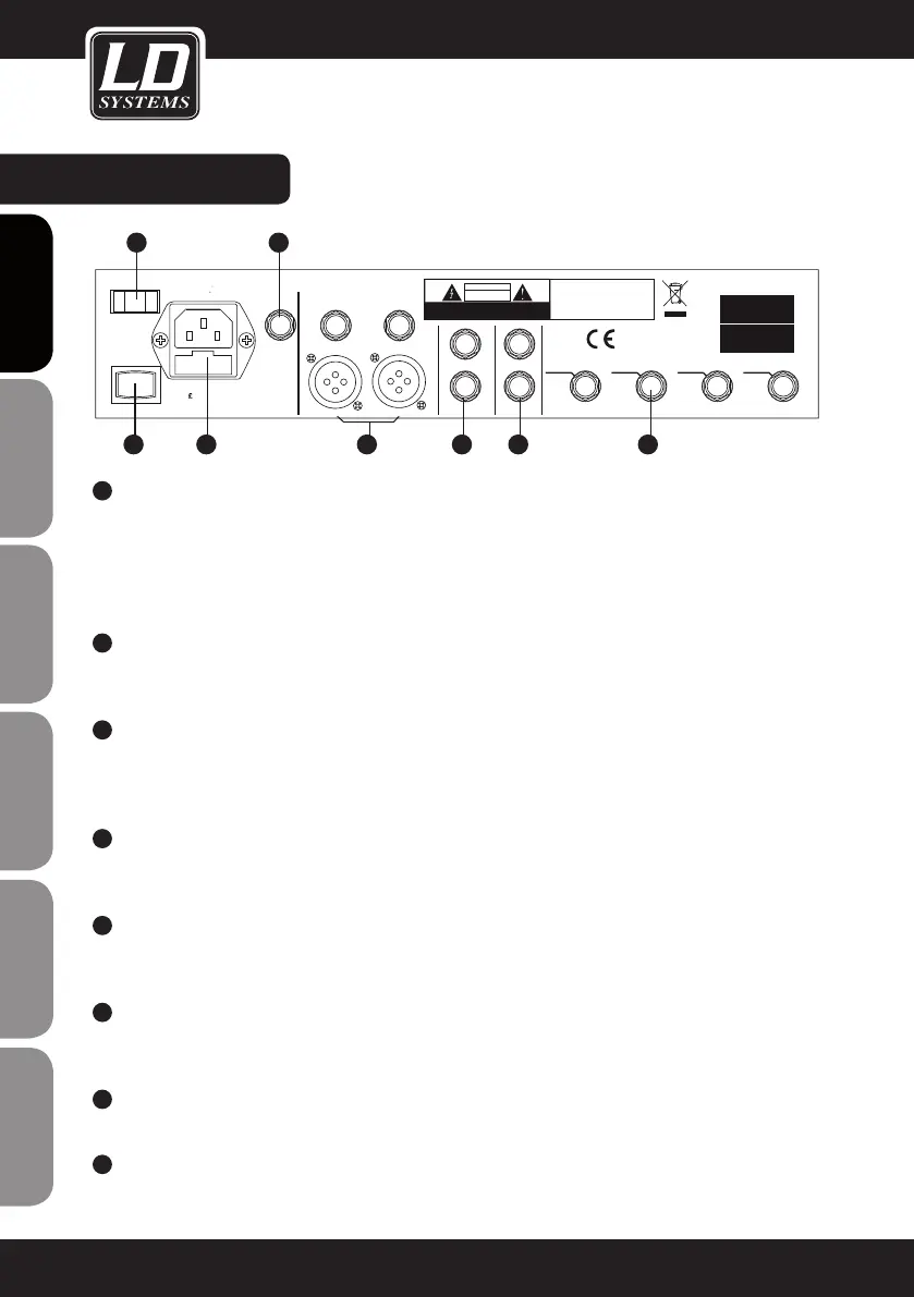 These 6.3 mm sockets are used to send the signal to studio monitor speakers (CONTROL ROOM) or a PA