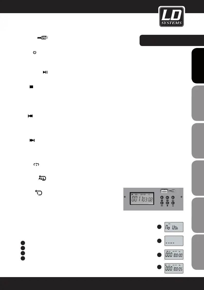 Press this button during playback to stop the playback. The display will now show how many tracks are available