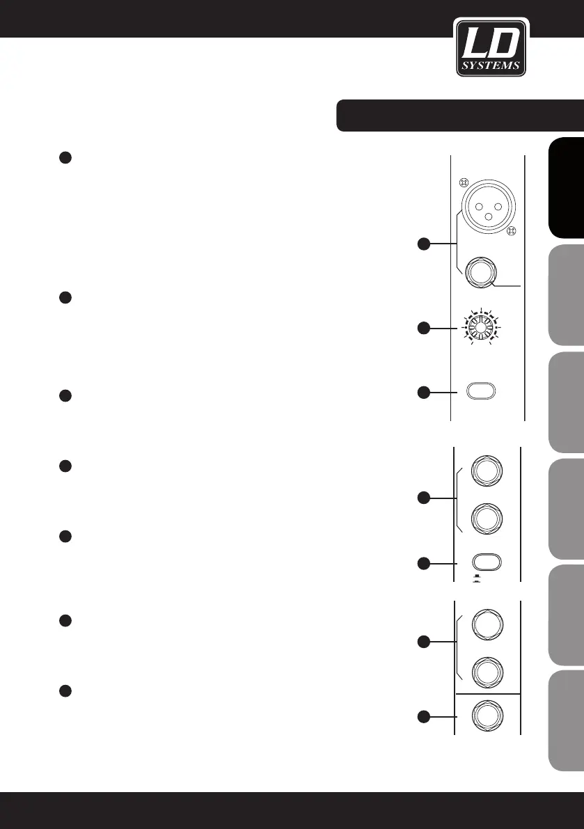 The LOW CUT button activates a low cut lter (75 Hz, slope 18 dB/octave) for