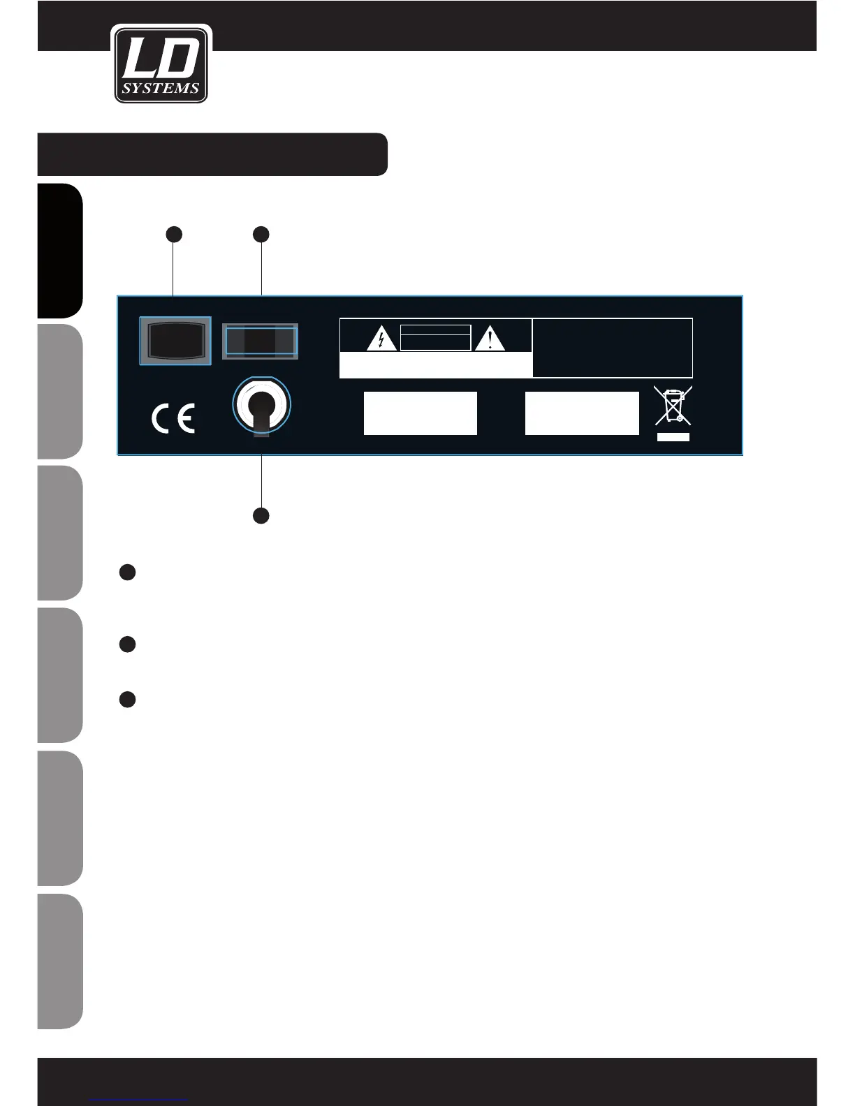 This switch activates the +48V phantom power for the two XLR microphone inputs. Important: Never connect