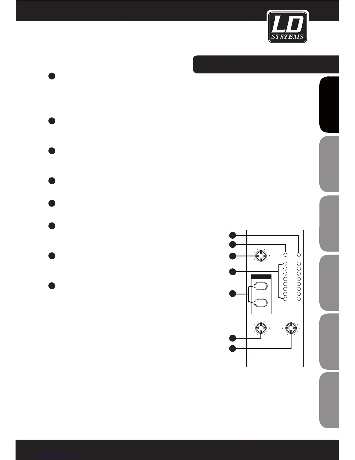 All channels of the LAX6/LAX6D are equipped with a peak LED for monitoring the respective audio signal. If the peak LED