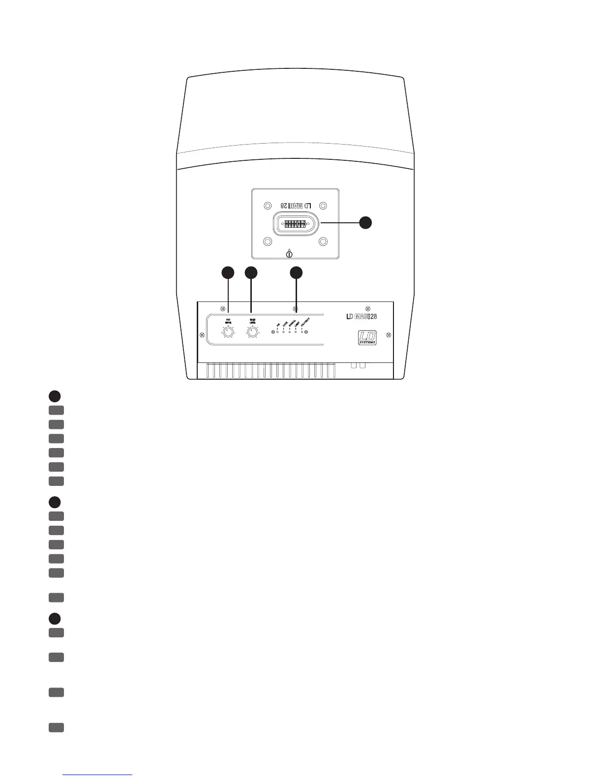 the input. LIMIT: lights up when the limiter is active. PROTECT: lights up when the system is overloaded and automatically switches to mute.