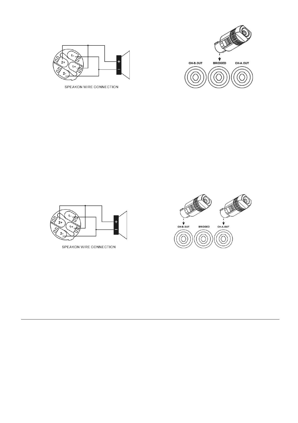 1-、2- Signal output (-) connect to speaker (-)