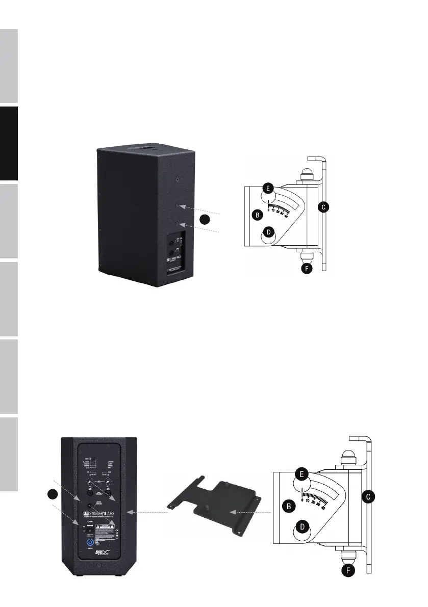 die Schraubenmutter wieder festziehen. Horizontal können Sie den Lautsprecher verstellen, indem Sie die Schraubenmutter F leicht lösen