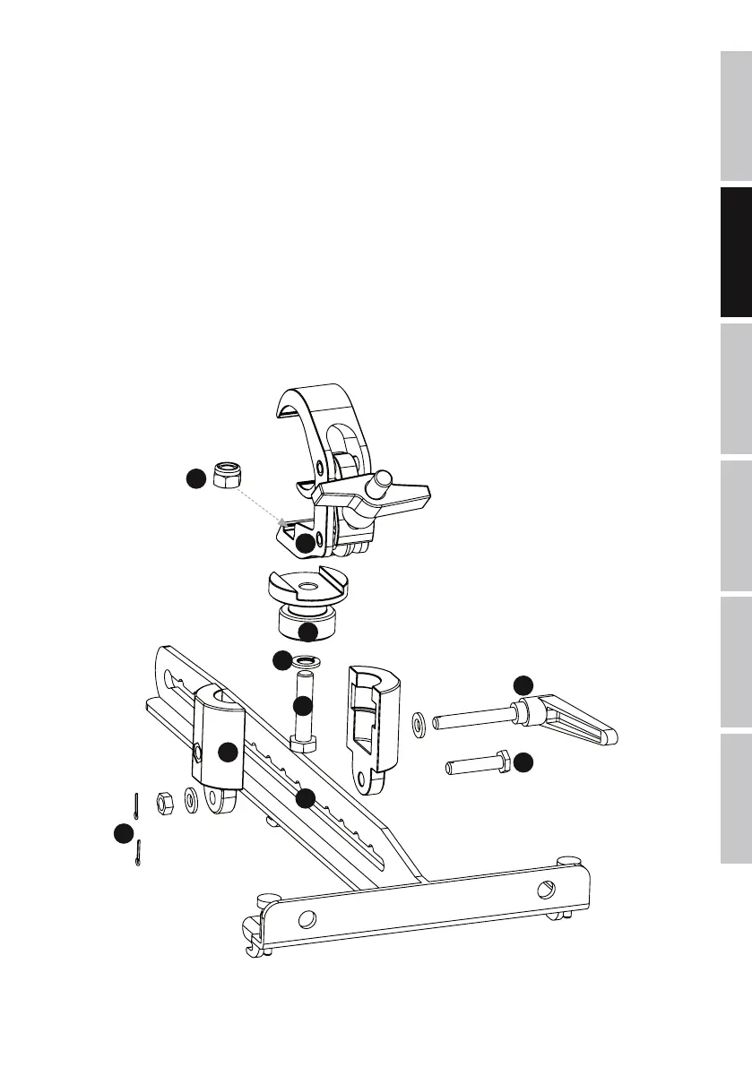 führen die Schraube mit der Federscheibe durch das Gußstück in die Traversenklemme (siehe Zeichnung).