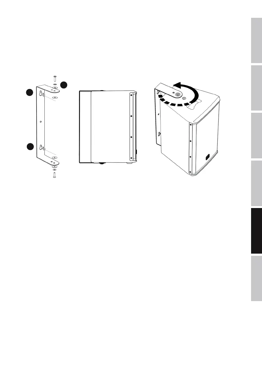 się, że szyna została solidnie zamocowana. Wyjmij śruby M8 z góry i z dołu głośnika oraz unieś głośnik do wspornika tak, aby gwintowane śruby