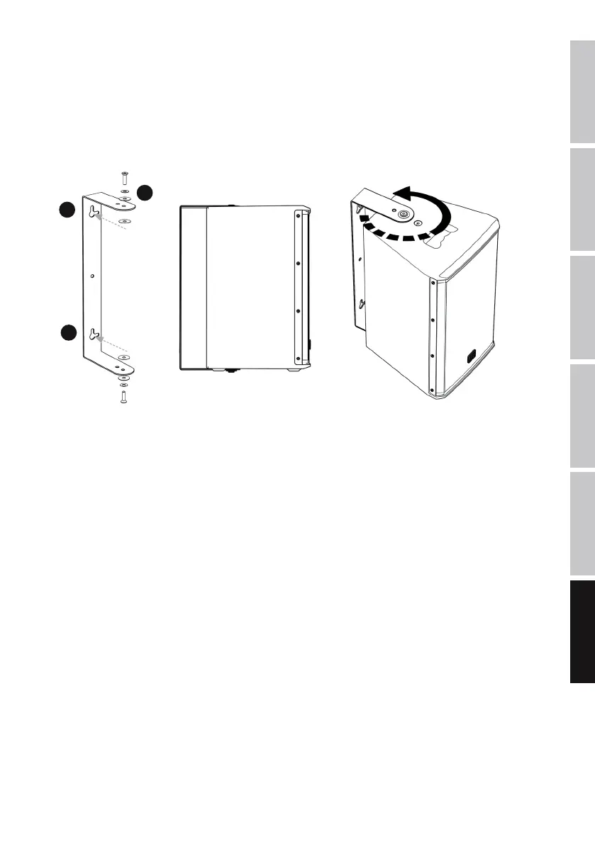 sollevare quest'ultimo inserendolo nella staffa in modo che le posizioni delle filettature nell'altoparlante e i fori per le viti nella staffa corrispondano. A