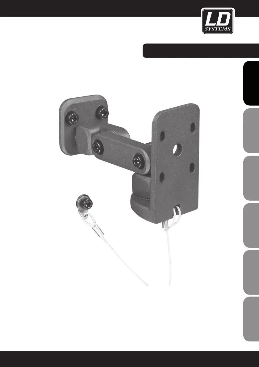 Universal speaker wall bracket with safety rope. Four snap-lock joints permit mounting of the speaker in virtually