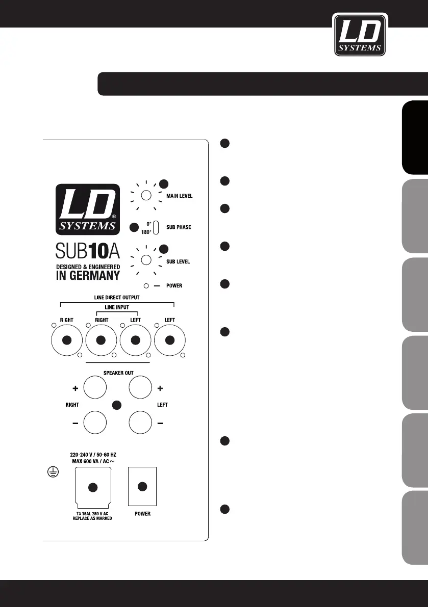 Balanced line input (XLR / 6.3 mm TRS combo, left