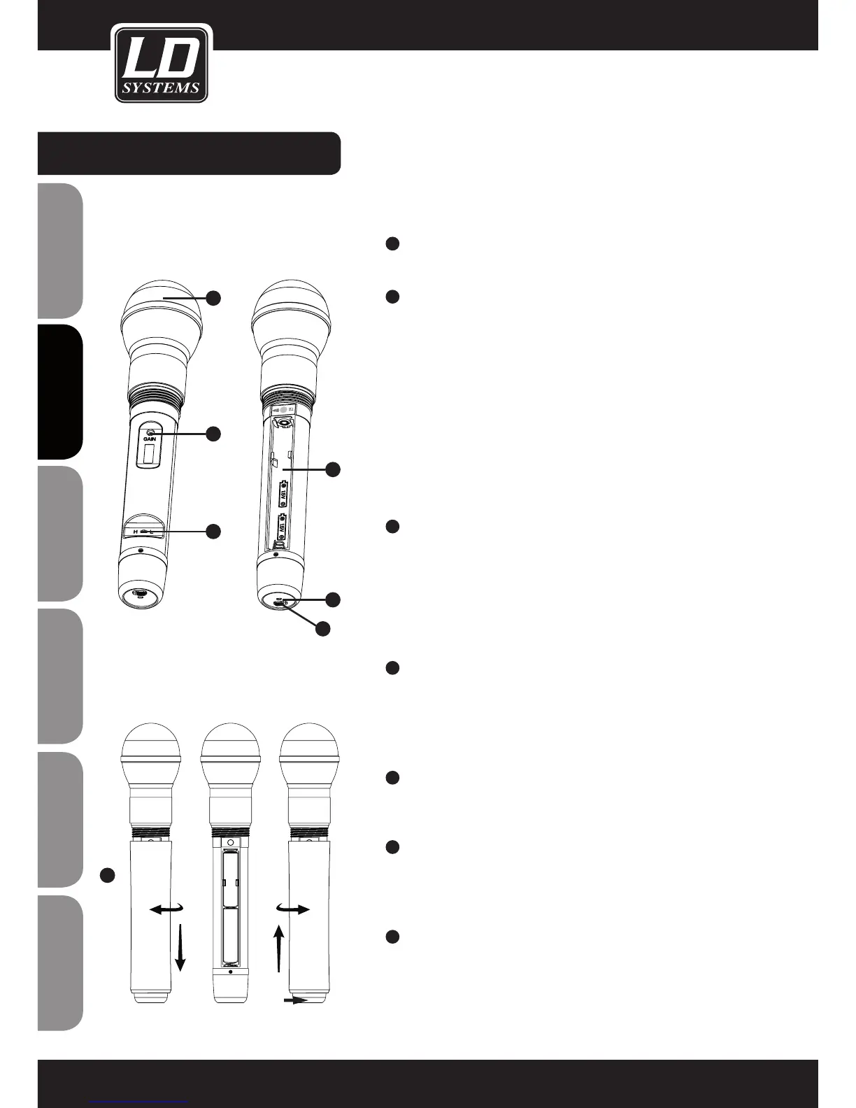 Einstellung der Mikrofonlautstärke. Nach links gedreht verringert
