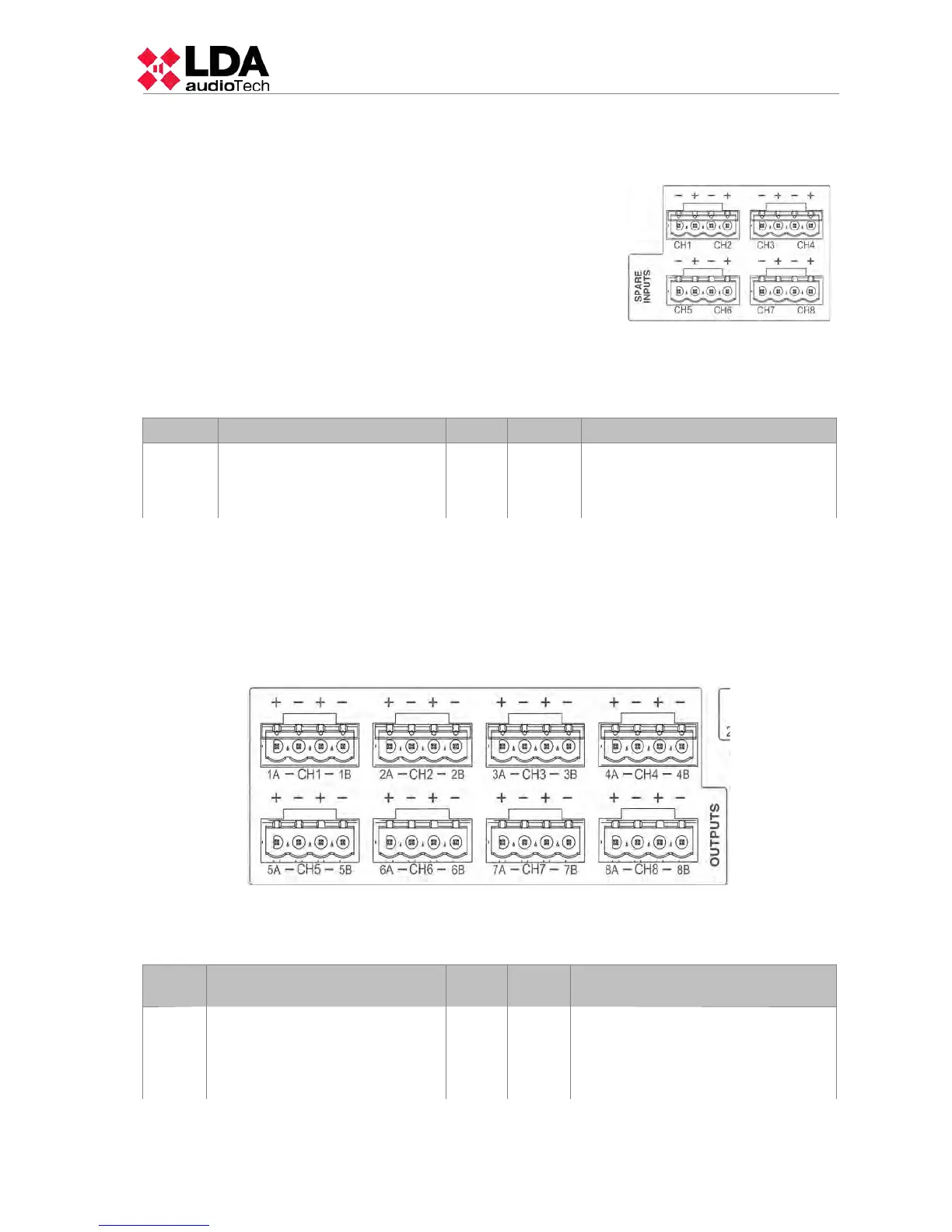 Table 12: Spare Channel Inputs
