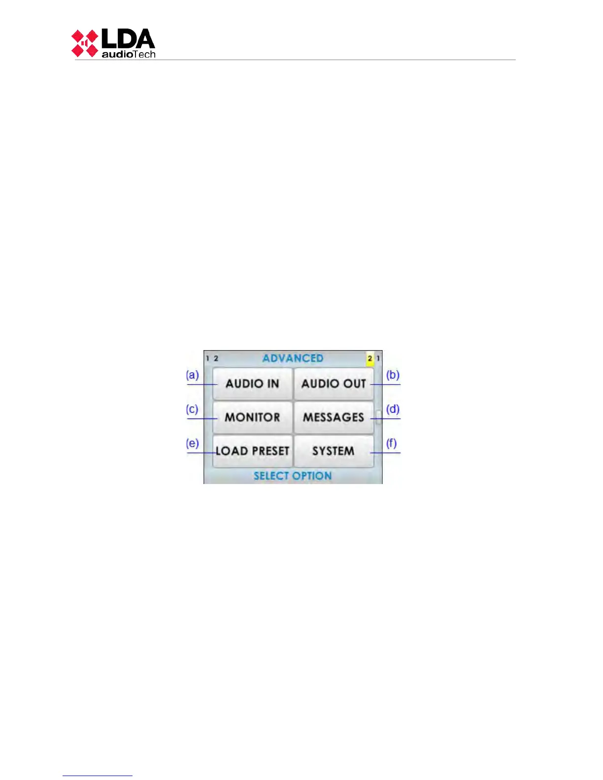 from the PA menu, click on the "ADVANCED" button, an user control access level 3 (see 2.3).
