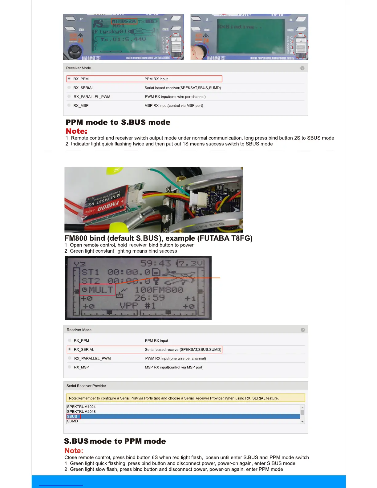 LDARC 200GT - PPM to S.BUS Mode Switching; FM800 Receiver Binding Example; S.BUS to PPM Mode Switching