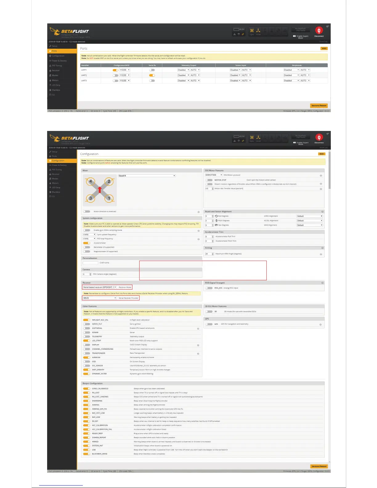 4.Select ESC protocol“DSHOT600”,set up the receiver protocol,open LED.