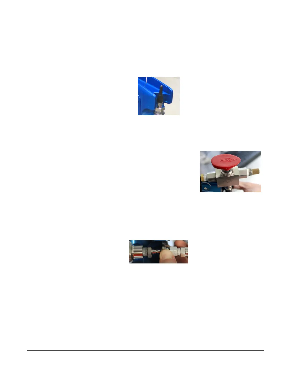 7. Turn the handle back 180° to close the valve. There will be a slight hiss from the release of