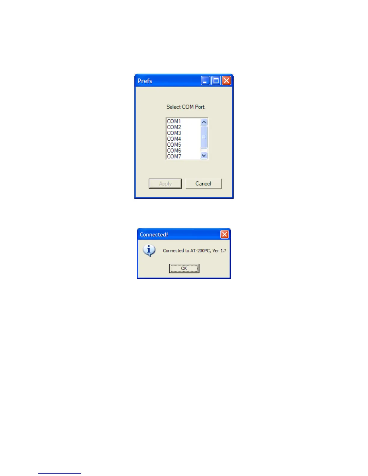 Click on the appropriate COM port (COM1, for example), the click "Apply". The software will