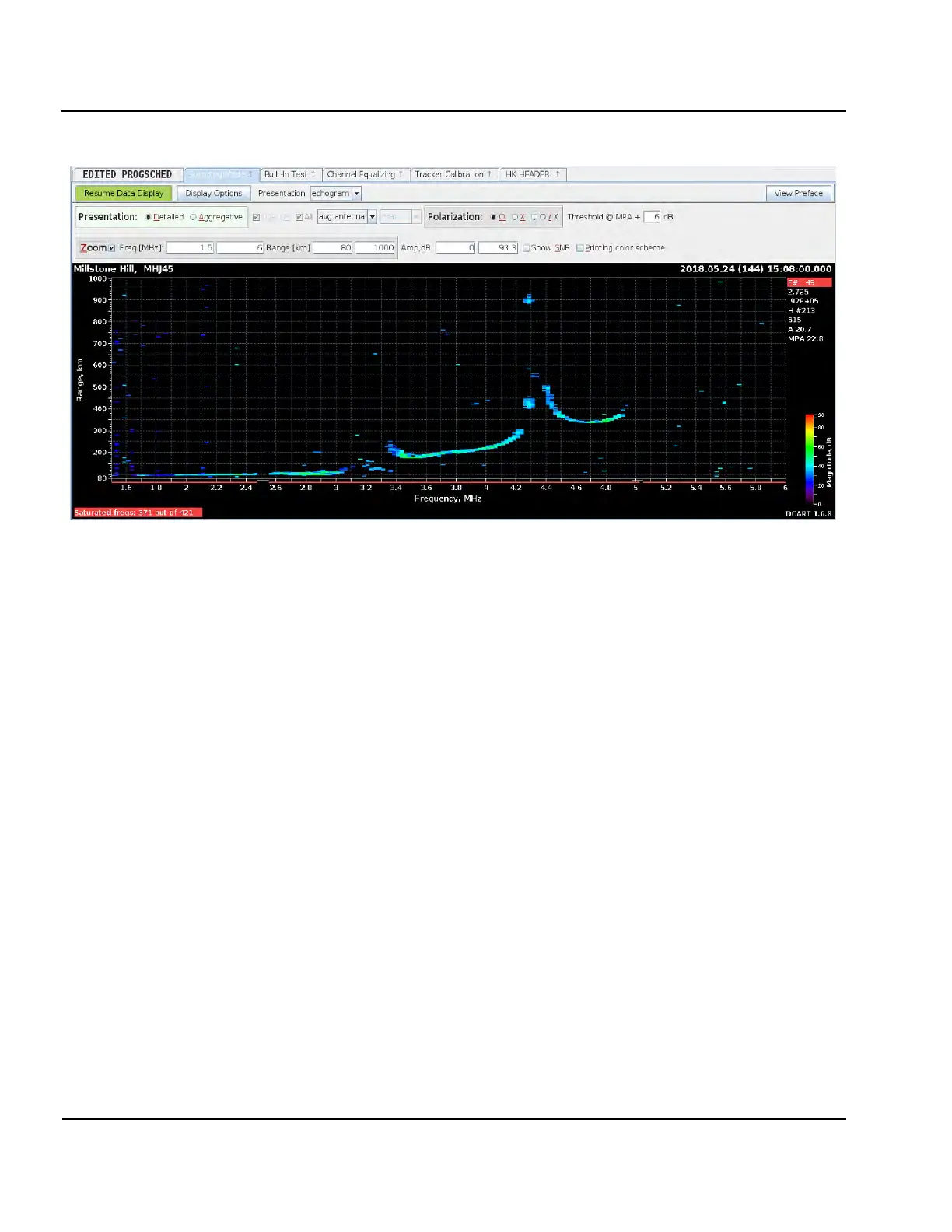 presents the ionogram data in the frequency surveillance style as shown in Figure 3-41. It is possible to select