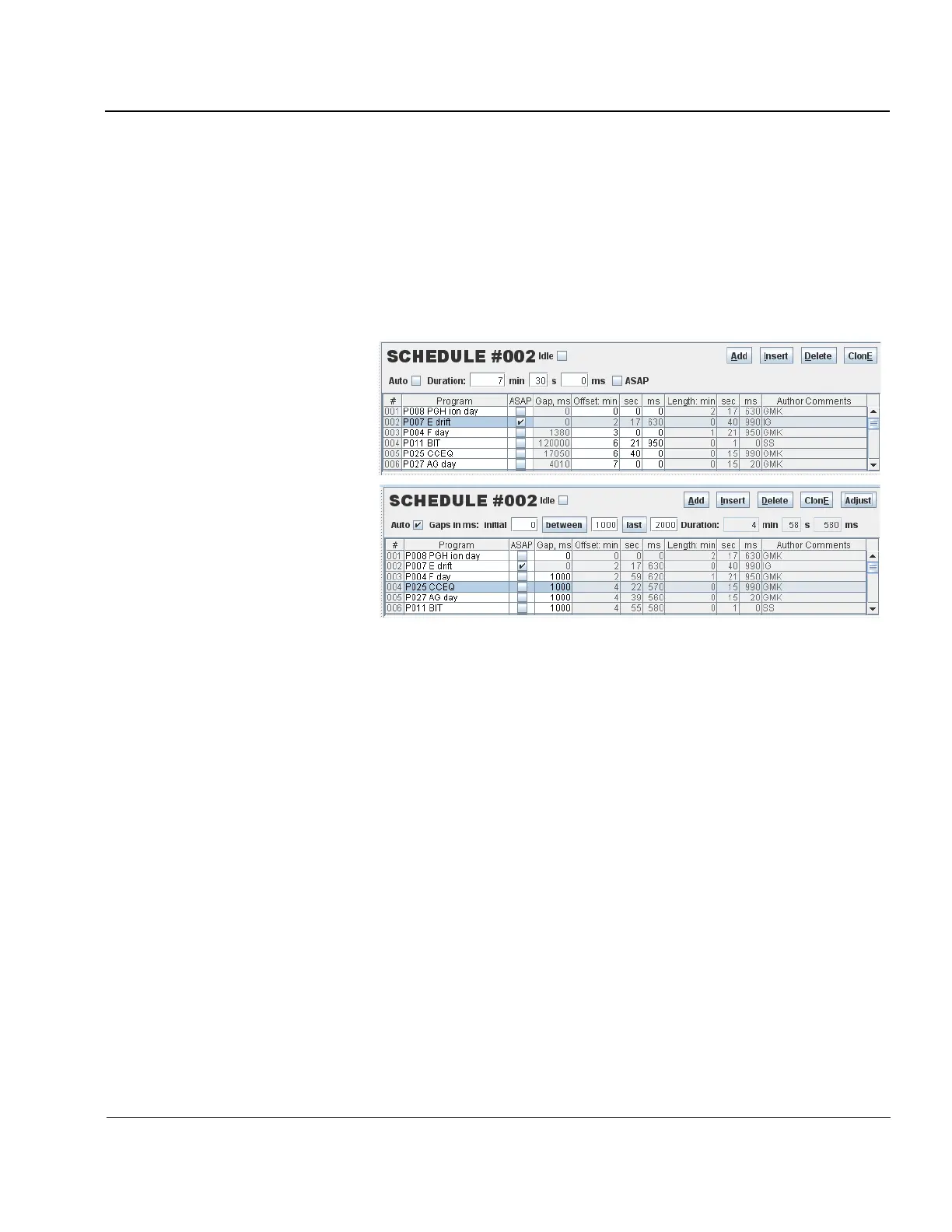 (Figure 3-45) in which gaps between scheduled programs are forced to a fixed value (1000 ms for the example