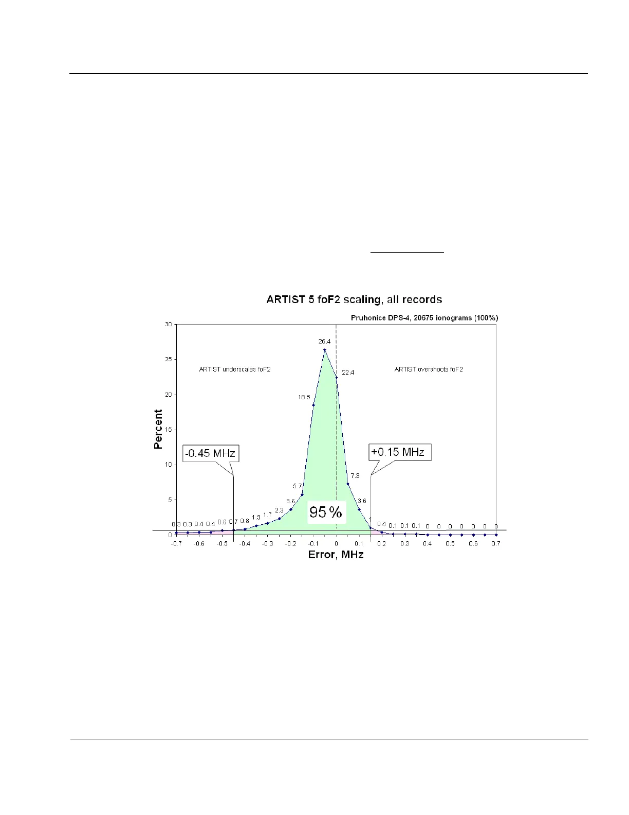 scaled Průhonice DPS4 ionograms. The error histogram plots the percent of records as a function of observed